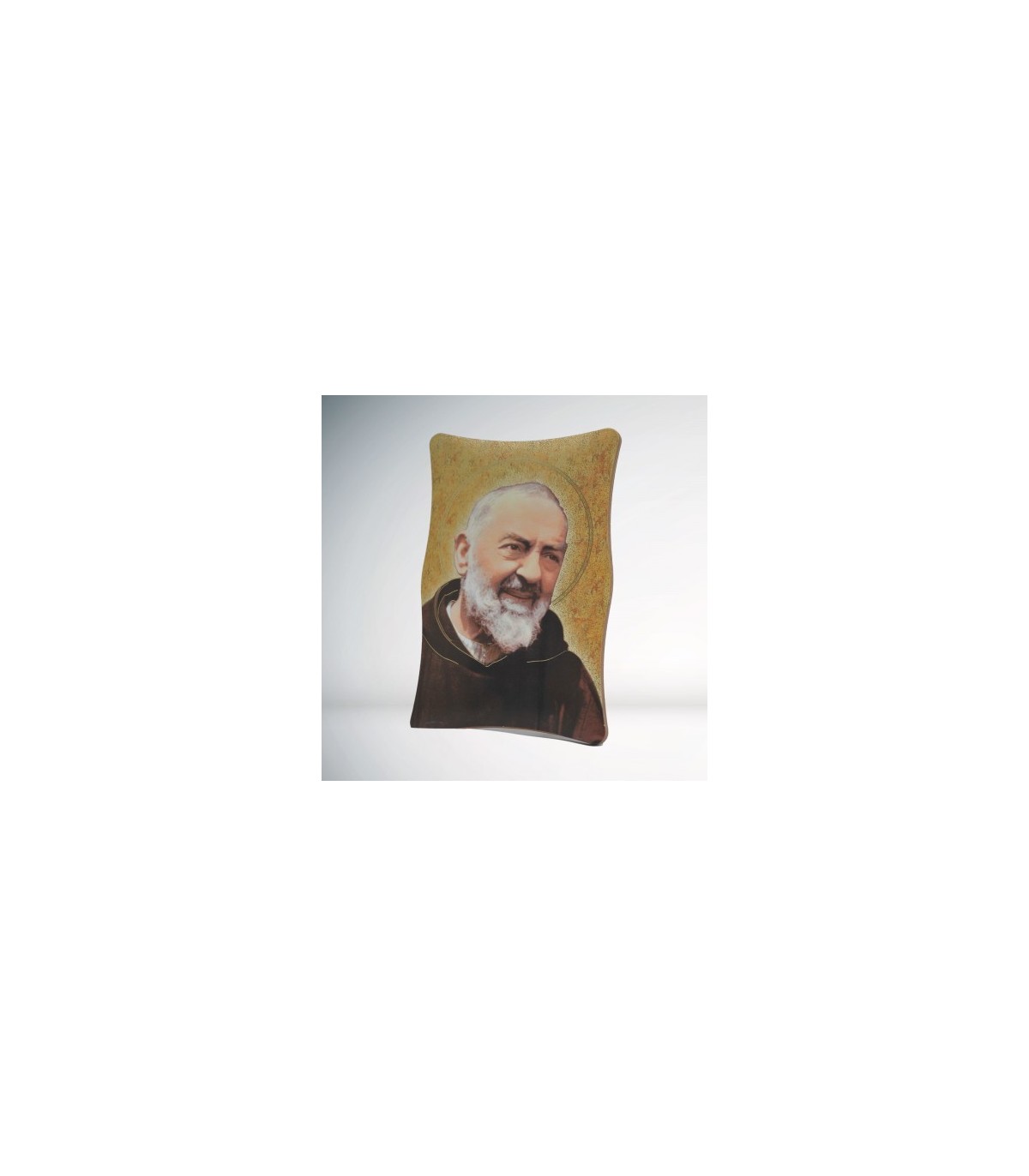 Platz im Termopolimero. Prozessfarben drucken und heiß Vergoldung das Bild Darstellung von Padre Pio. Anwendung auf Rückseite des goldenen Karabinerhaken und Kunststoff-Unterstützung für weitere Unterstützung.