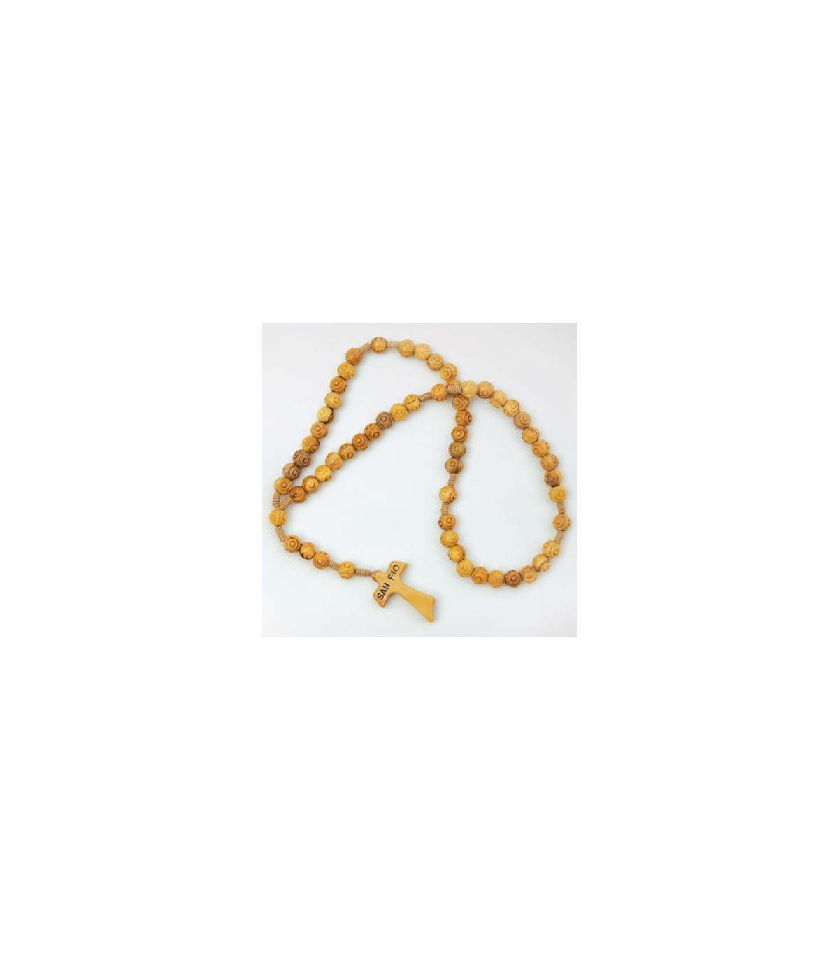 Olive Holz Rosenkranz trocken gewürzt, mit runder Form verarbeitete Körner und Seil zu binden. Tau in Olivenholz mit Inschrift: "San Pio".