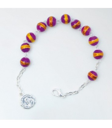 Bracelet résine mettant en vedette des perles rondes en argent plaqué Ligature métallique et agrafe. Pièce avec photo relief représentant Padre Pio et, à l'image de secours arrière, représentant l'église Santa Maria delle Grazie.