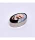 Oval gilt metal box. Process-color printing of the image depicting Padre Pio. Internal removable casing in white PVC.
